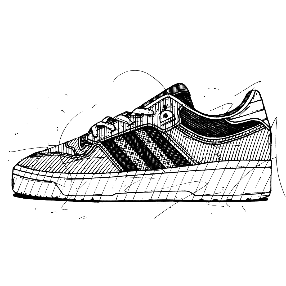 Hand drawn sneaker/shoe illustrations, all done using fine line ink pens x
